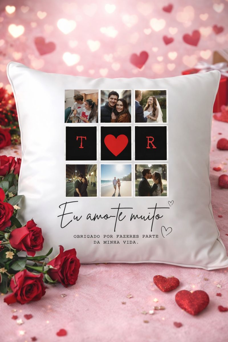 Almofada personalizada com fotos e mensagem romântica. Um presente único para demonstrar amor e carinho.