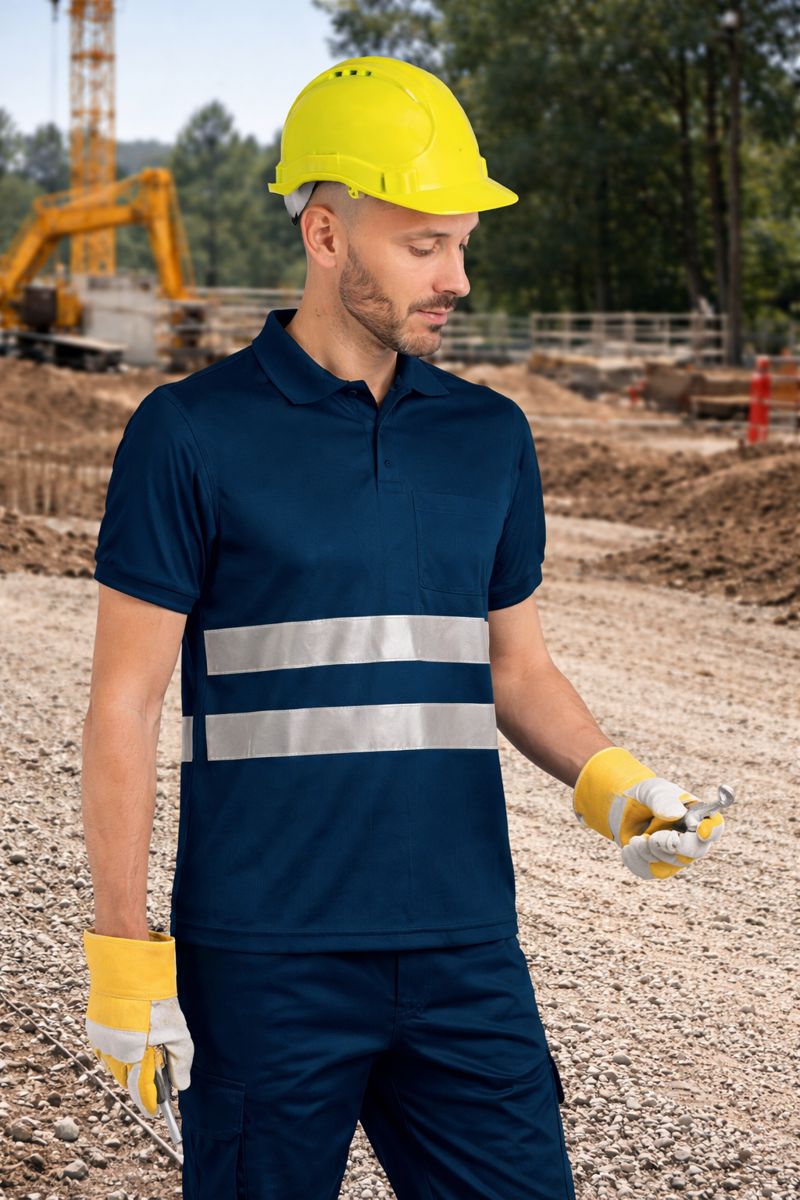 O Polo de alta visibilidade com manga curta e bolso oferece conforto, segurança e praticidade no trabalho diário.