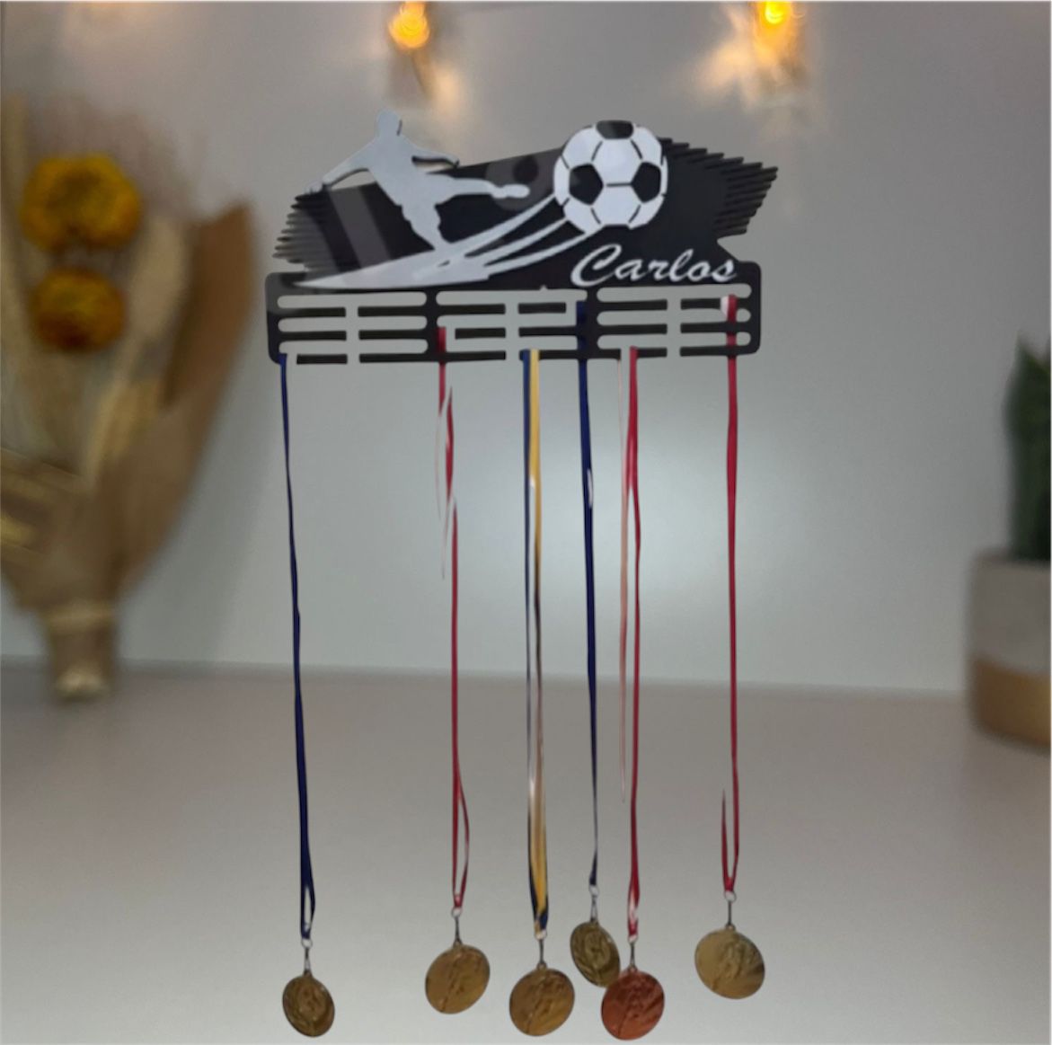 - Capacidade: Suporta até 20 medalhas com ganchos resistentes