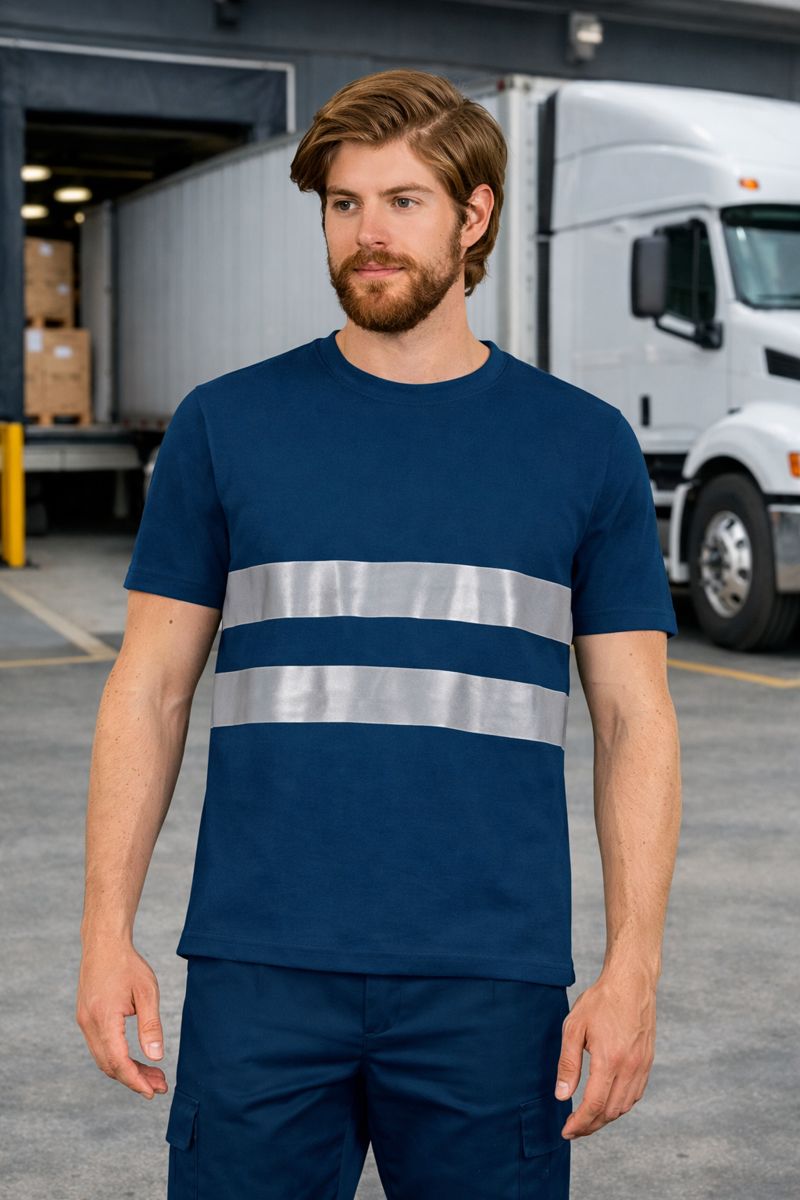 T-shirt de manga curta com visibilidade aumentada. Confortável, resistente e certificada como EPI Categoria II, ideal para trabalho profissional e visibilidade noturna.